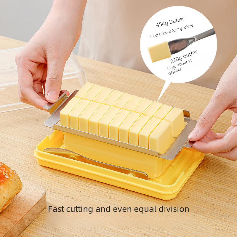 Butter cutting storage box 304 stainless steel transparent butter slice with lid built-in butter fork packing crisper