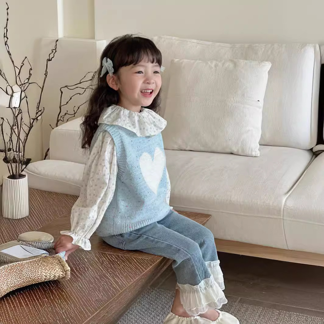 Girls’ Sweater 2024 Spring and Autumn New Fashion All-match Baby Girl Sweet Love Cute Fresh Knitted Vest