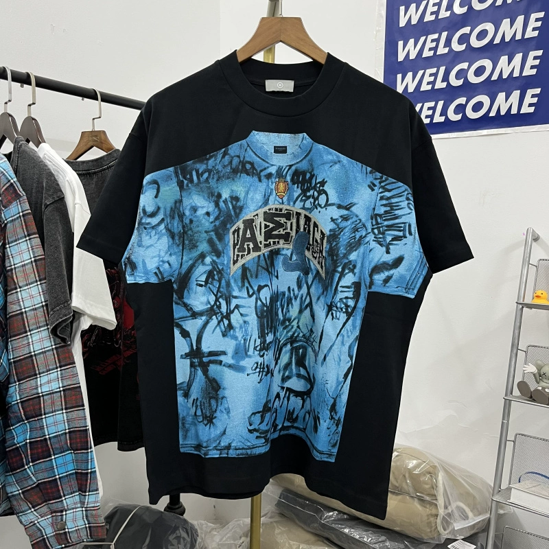 Hip -hop American letters fake two pieces of short -sleeved fun graffiti