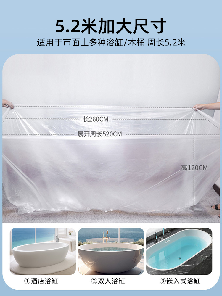 2TCU bath plastic film bathtub travel bath bag thickened disposable bath bag hotel bath bucket bath