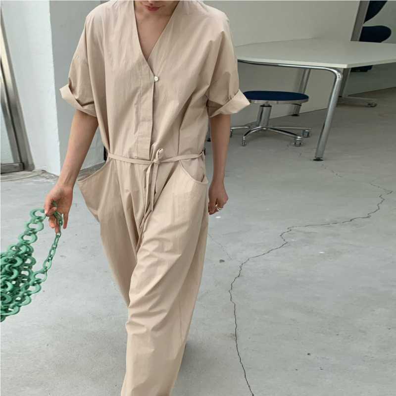 Small One Small Flower Button Commuter Street Loose Tooling Jumpsuit