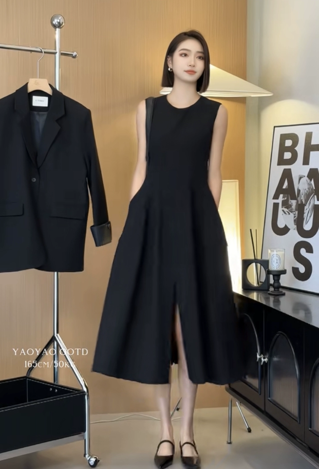 Women’s French temperament is simple, thin sleeveless small black skirt