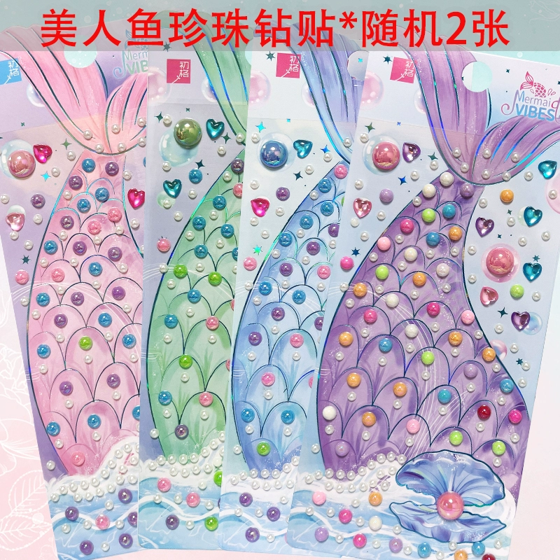 Cute girl children cartoon mermaid princess sticker paper dreamy pearl jewel love heart diamond 3d three-dimensional sticky painting