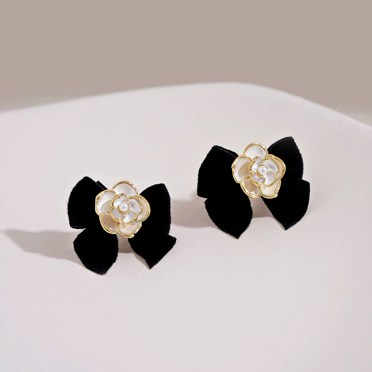 Xiaoxiang second-hand camellia earrings, elegant lady black bow earrings, French Hepburn style earrings, new and trendy