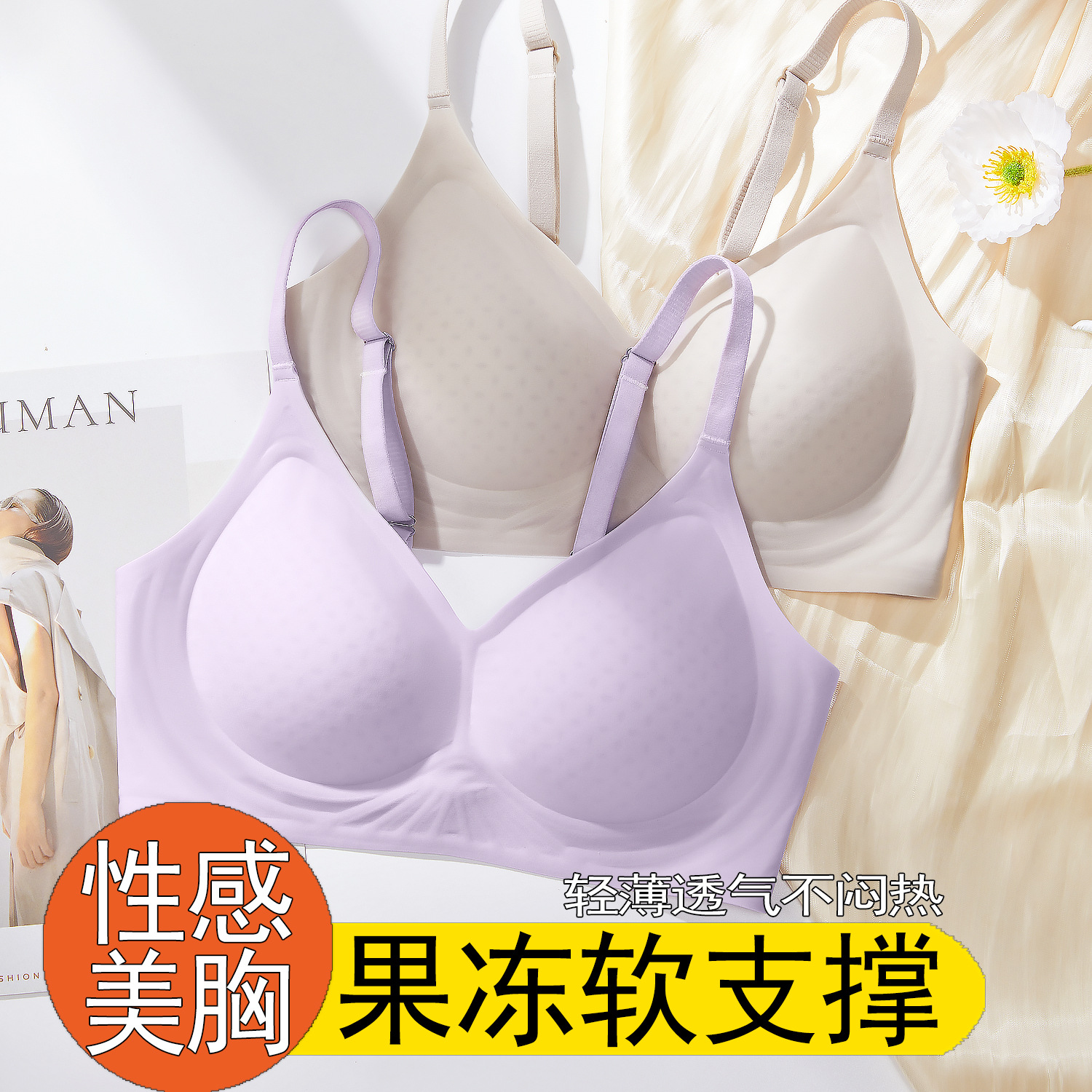 Naked seamless underwear women’s soft support jelly breast anti-sagging adjustable non-steel ring breathable thin bra