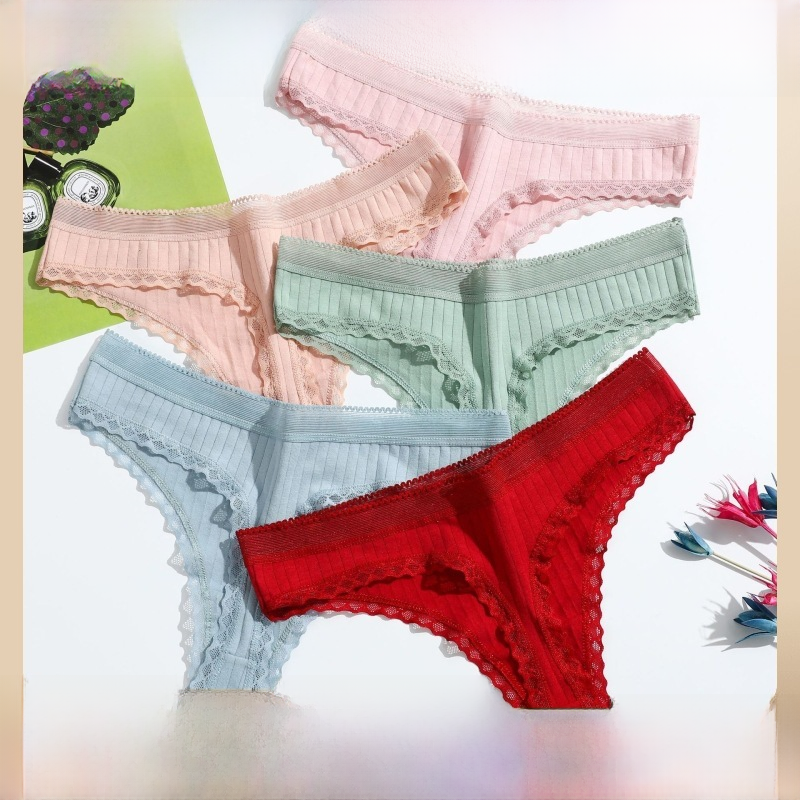 New European and American cross-border low waist thong girls hot beads cotton underwear lace ladies T-pants wholesale