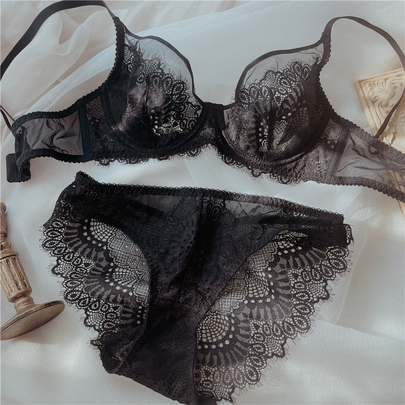 Summer Ultra-thin Rabbit Ear Traceless Underwear Women’s Big Chest Small Sexy Lace Breathable Latex Crystal Cup Bra