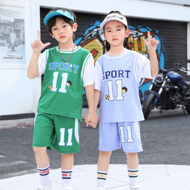 Summer new children’s quick-drying short-sleeved shorts suit boys and girls stitching trendy children’s basketball clothes suit wholesale
