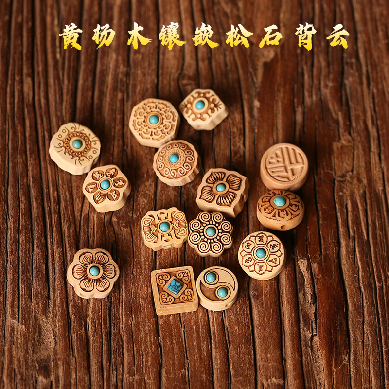 Boxwood inlaid turquoise gossip six-petal flower window grilles back Cloud accessories DIY car hanging key chain pendant accessories