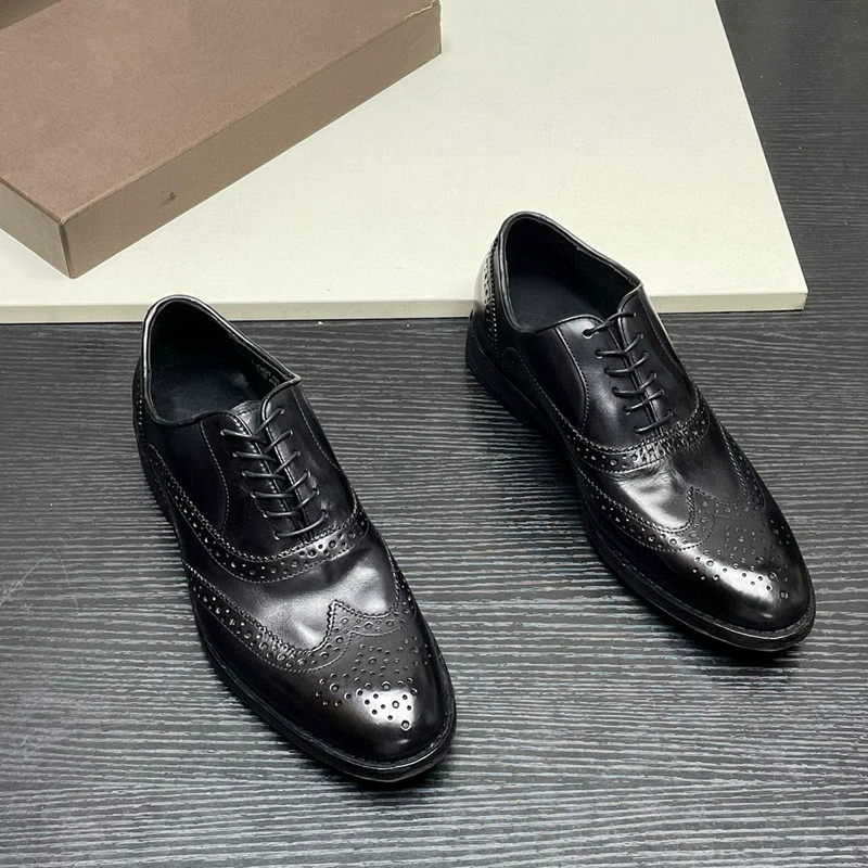 New open edge bead polished bright leather business formal leather shoes men’s low-heeled almond-shaped shoes genuine leather large-soled Oxford shoes