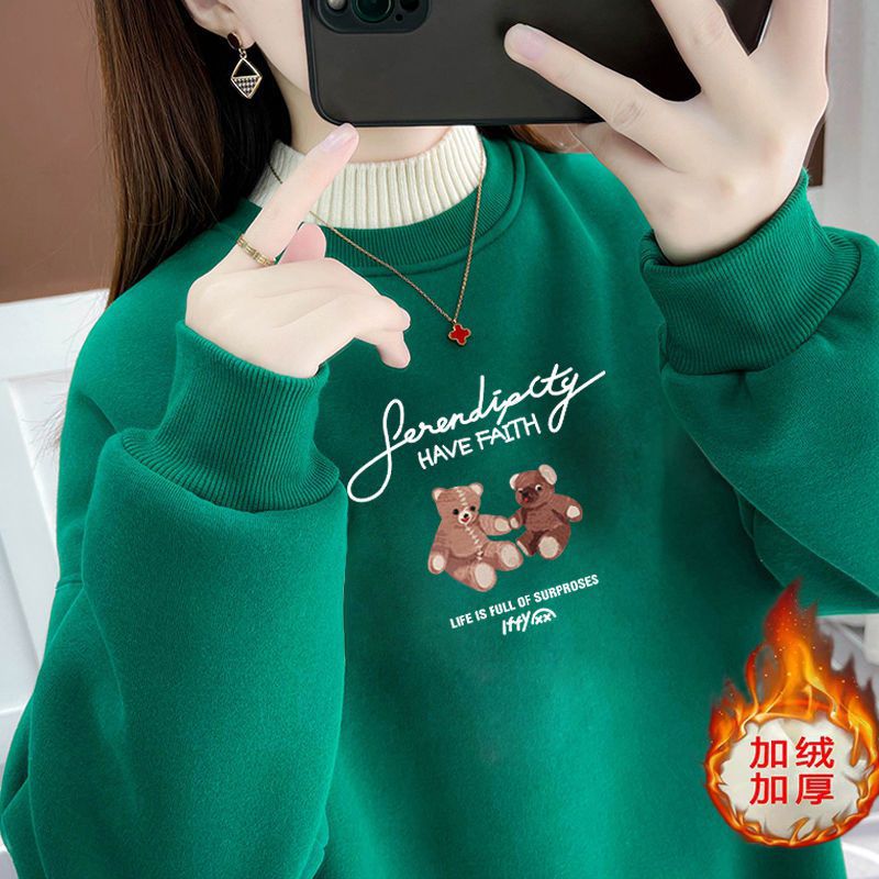 Crewneck Sweatshirt Women’s Spring and Autumn fleece-lined Thickened Early Autumn Korean Fashionable Loose Fake Two-piece Top