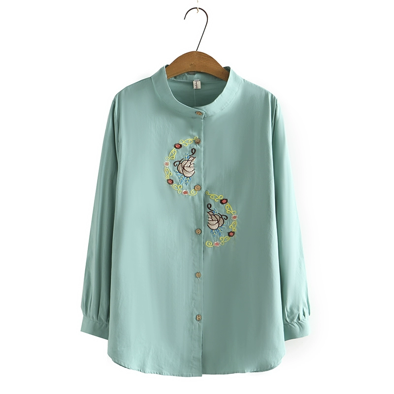 2022 autumn women’s new casual top literary style stand collar chest embroidered long sleeves large size loose shirt
