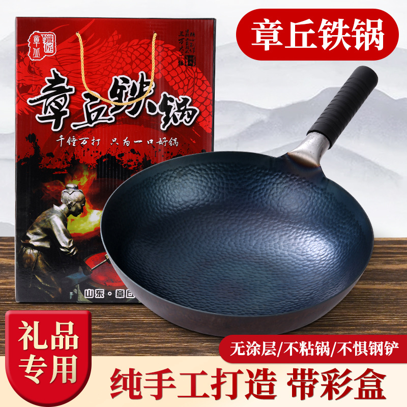 Handmade Zhangqiu Iron Pot genuine goods Fish Scale Pot Ancient Forging Traditional Old Iron Pot Uncoated Wok Non-stick Pan
