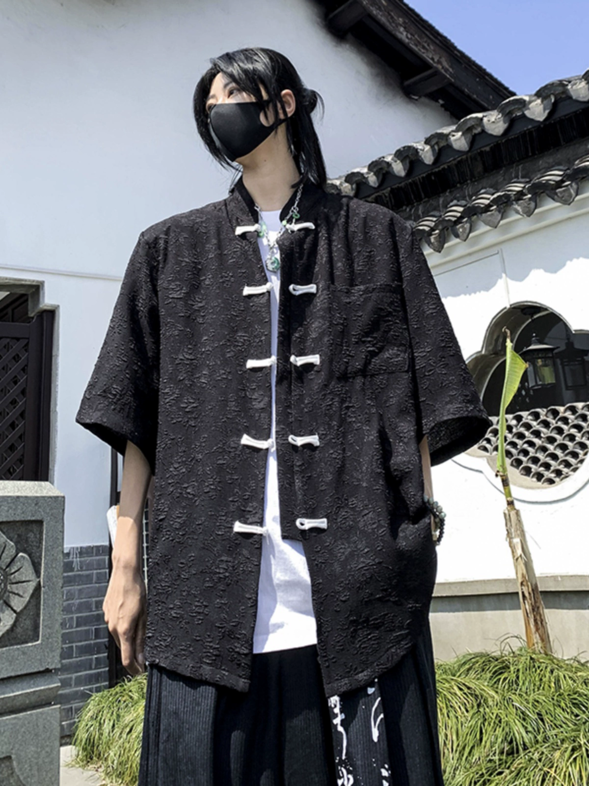 New Chinese style jacquard tray button casual jacket short-sleeved shirt