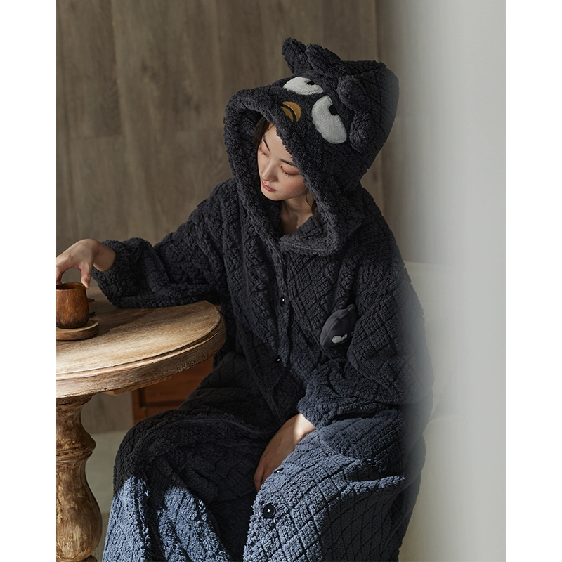 Coral Fleece Pajamas Women’s Winter Thickened Velvet Pajamas Set Cartoon Embroidery 2024 New Medium and Long Home Clothes