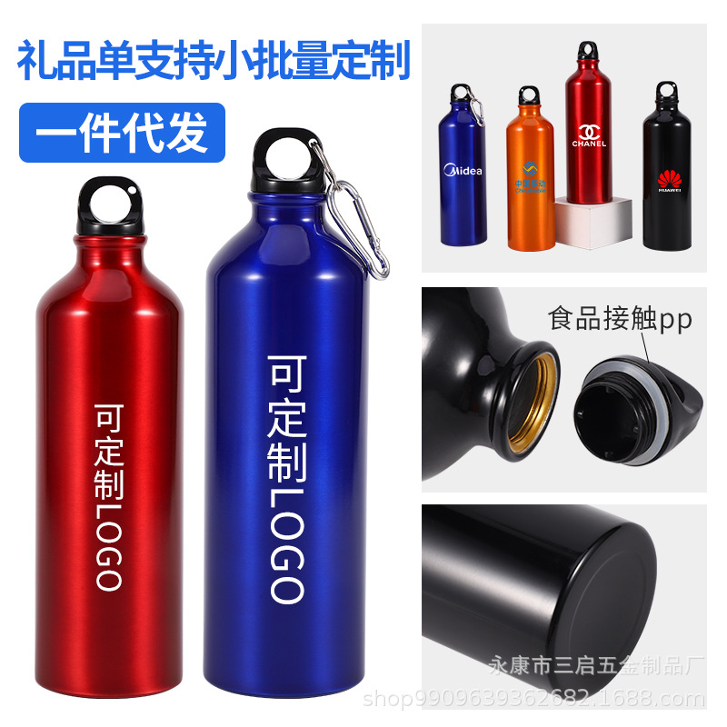Large Capacity single-layer aluminum cup riding outdoor portable handle sports kettle advertising gift Cup logo customization