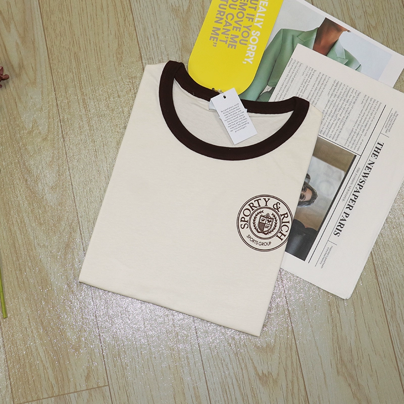 Niche letters print color cotton short -sleeved T -shirt