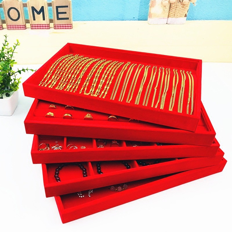 Gold Jewelry Plate Ring Necklace Bracelet Display Tray Red Flannel Gold and Silver Jewelry Jewelry Jewelry Storage Tray