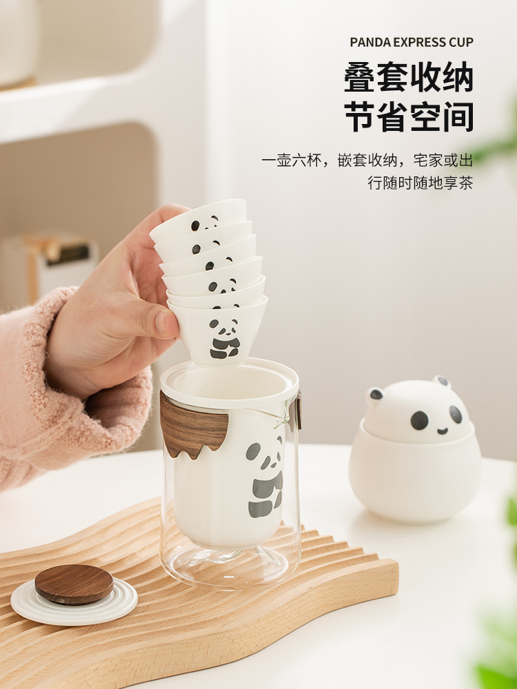 Guochao Panda Travel Tea Set Portable Women’s Personal Express Cup One Pot Three Cups Outdoor Tea suit