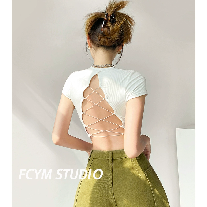 Jiuhong girl open -back dress beautiful back tie sweet princess bubble sleeve short sleeve summer birthday dress skirt