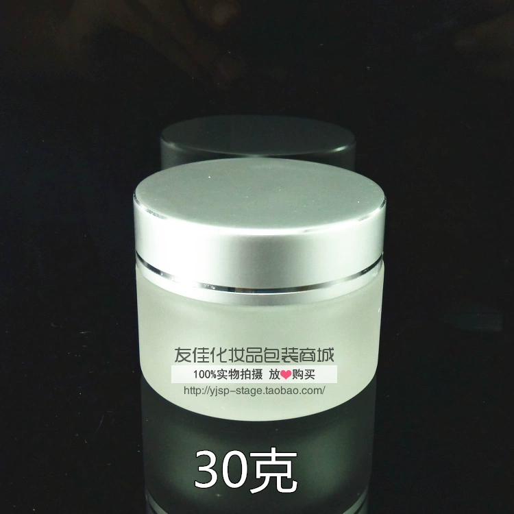 30g (gram) white frosted glass cream bottle/face cream bottle/eye cream bottle+matte silver tangent cap+hand-drawn pad