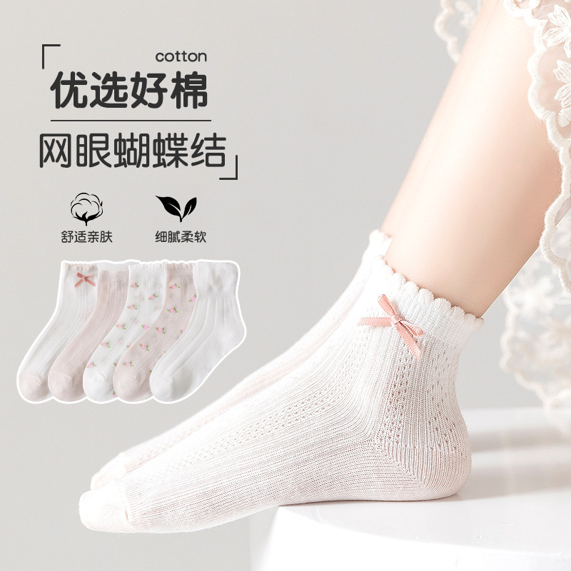 2022 spring and summer new children’s socks thin mesh socks pastoral small fresh tube socks baby mesh socks