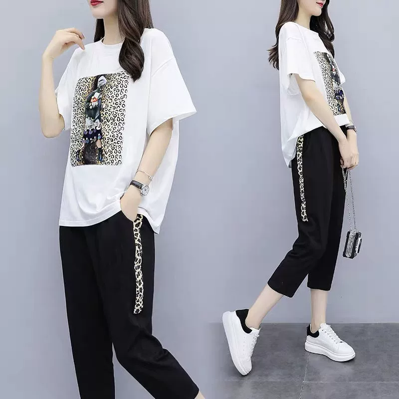 Fat mm extra-large size slim cartoon cropped pants summer outfit