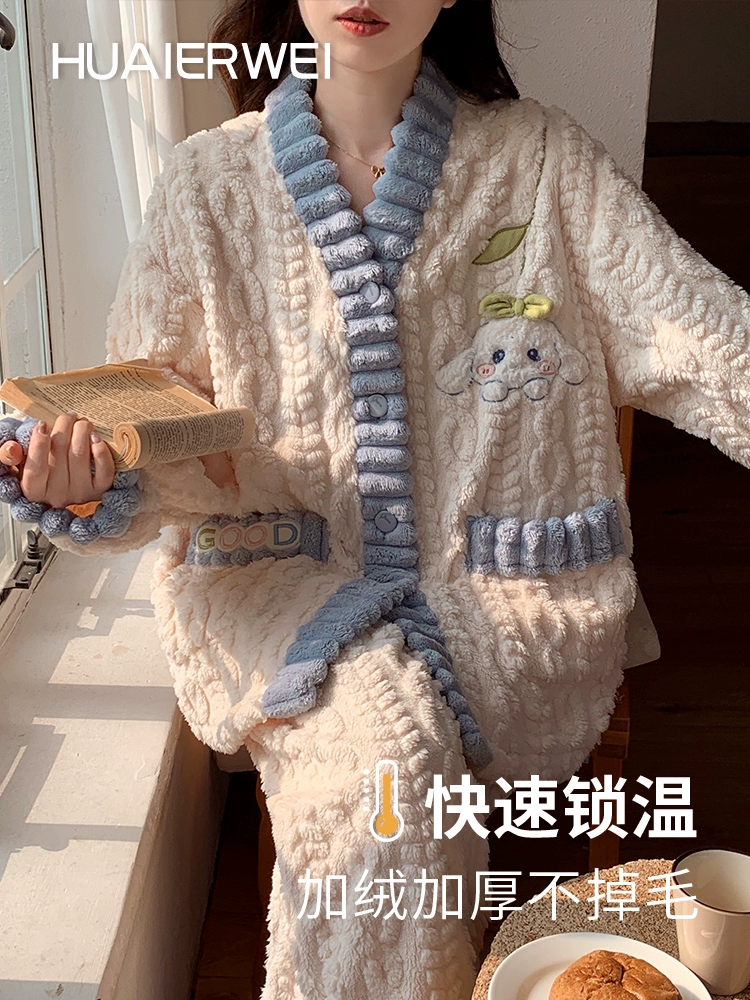 Coral velvet pajamas for women winter 2024 new thickened velvet autumn and winter flannel warm home clothes set