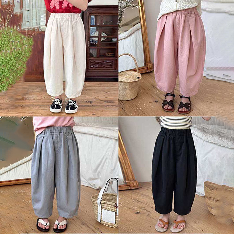 Emo Beibei Children’s Trousers 2024 Summer Loose Washed Cotton Casual Pants for Boys and Girls