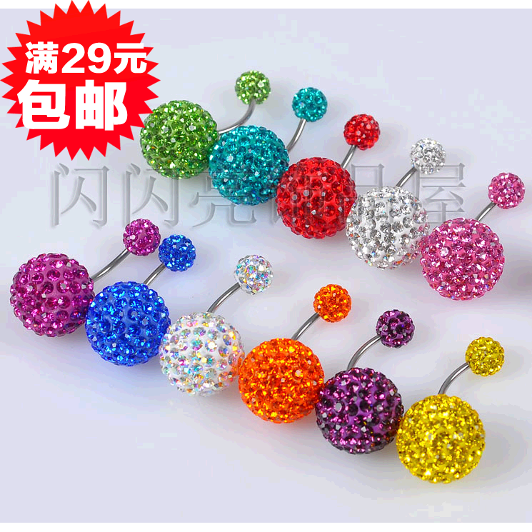 Korean version of double-headed ball earrings full of diamonds, large crystal earrings, navel nails, navel rings, temperament and versatile earrings hanging from the back