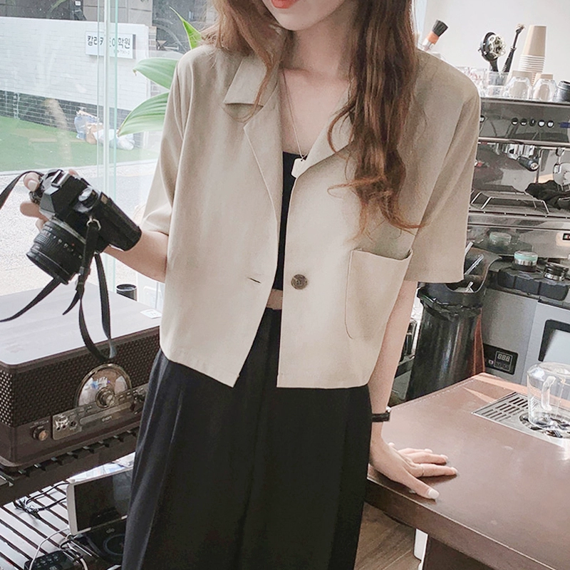 Chic Korean version of cotton and linen short jacket shirt suit suit