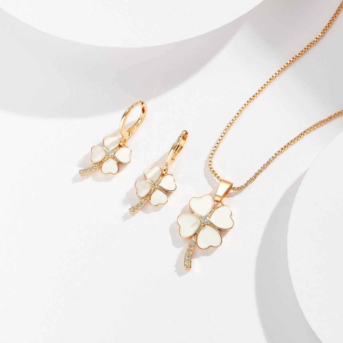 Cross-border Explosions Four-leaf Heart-shaped Necklace Gorgeous Color Zircon Foreign Trade Earrings High Texture Fashion All-match Jewelry