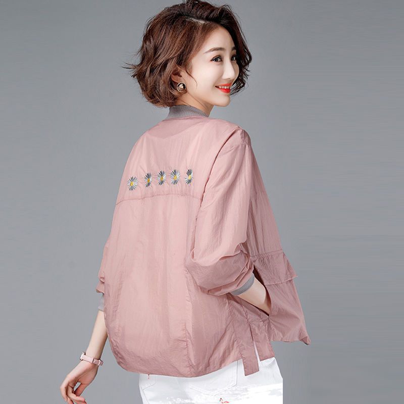 Sun-protective Clothing Women’s Outer Wear Thin plus size 2024 Spring and Summer Embroidered Loose Daisy Mother Short Breathable Jacket