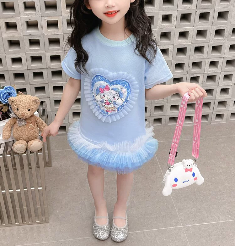 Color-changing girls sequins sweet short-sleeved T-shirt dress