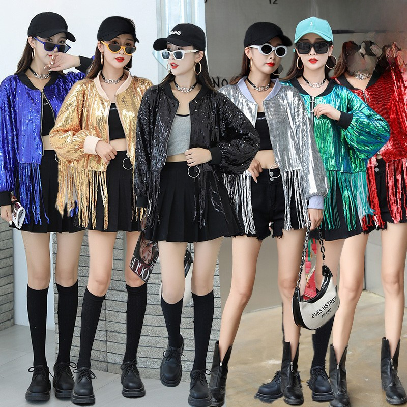 Sequins short loose sparkling top Tide brand singer fried street coat personalized nightclub stage performance costume dj
