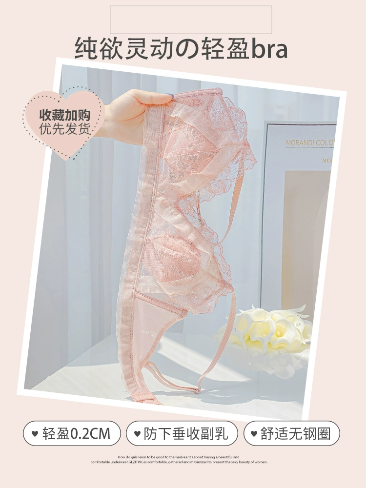 Sexy French Pure Underwear Girls Big breasts showing small breasts Summer ultra -thin, breathable lace no steel ring bra