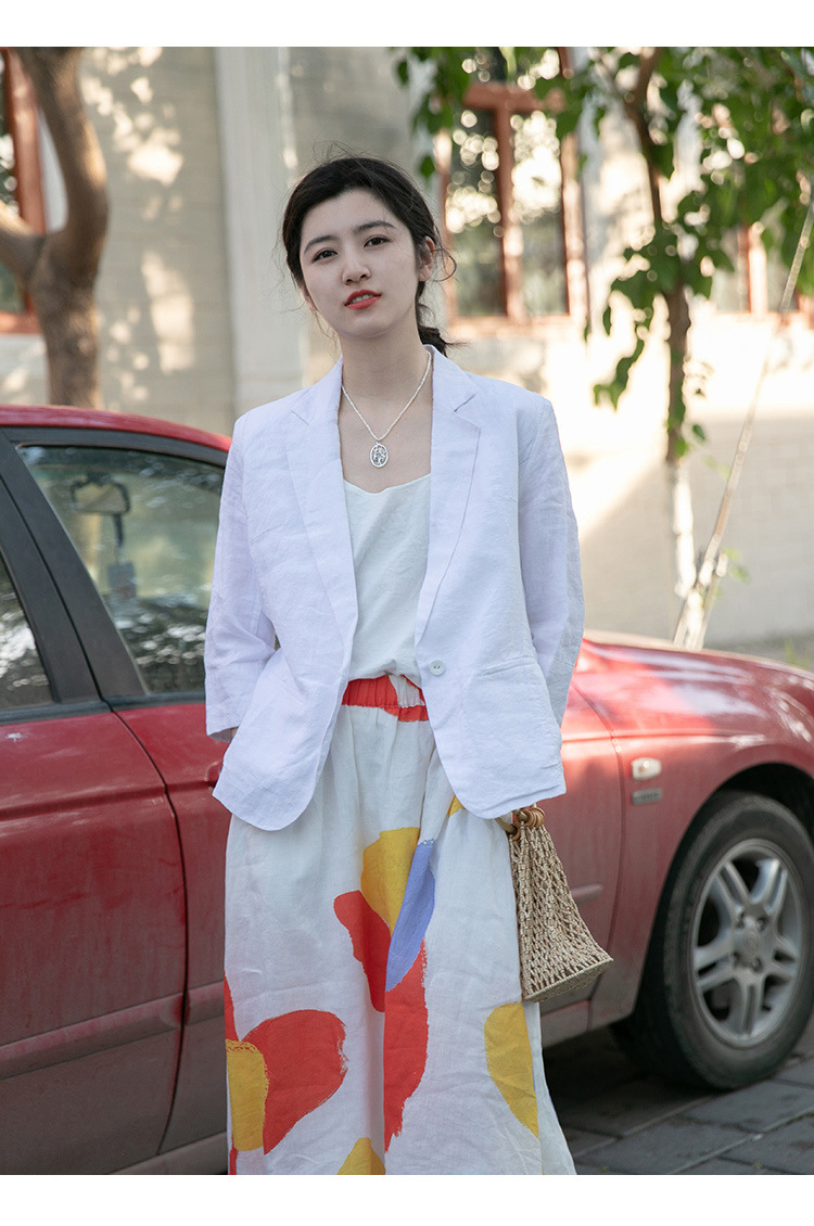 2021 summer new artistic retro half sleeve small suit linen jacket women’s thin solid color short small suit