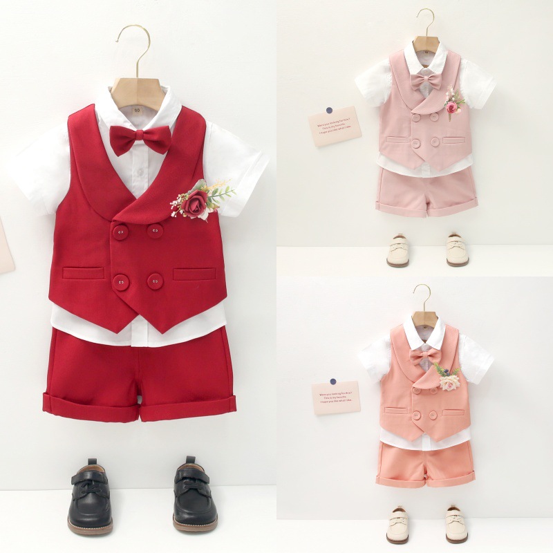 Boys’ Suit Suit Summer Boys’ One-Year-Old Dress British Flower Children’s Wedding Suit Piano Watch Playing Suit