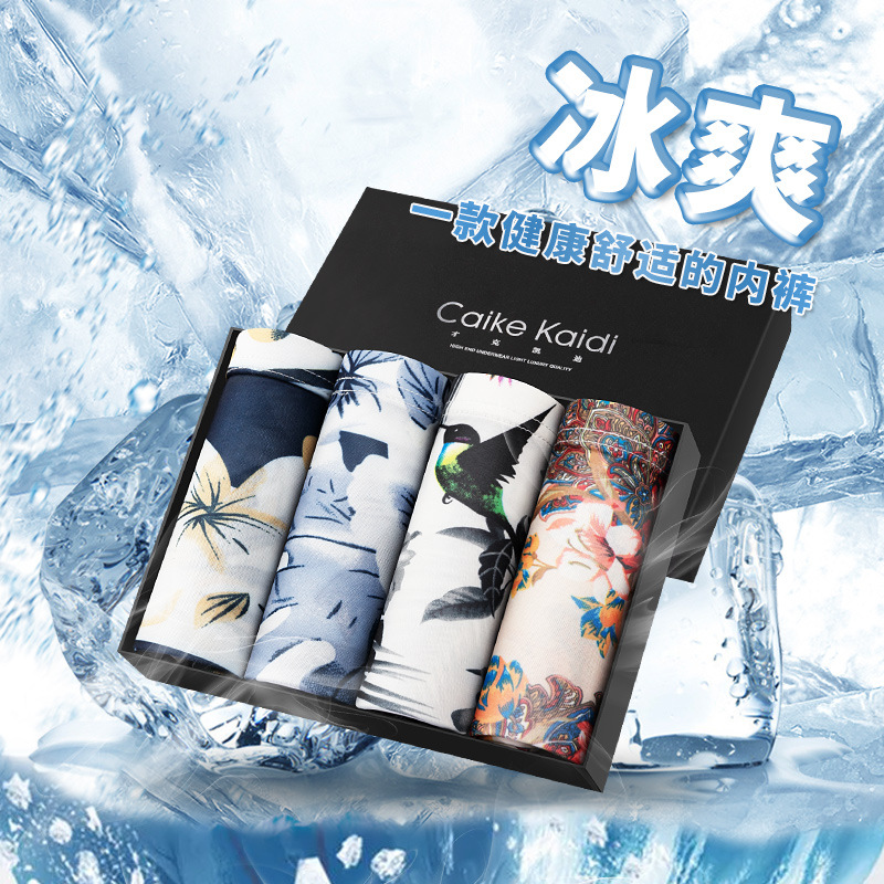 Summer men’s underwear men’s cotton crotch antibacterial Ice Silk one-piece boxer ultra-thin coquettish breathable seamless boxer shorts