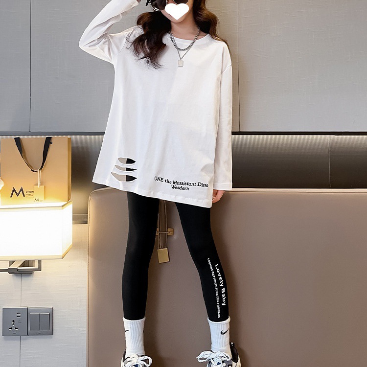 Girls’ Spring Base Shirt 2024 New Style Western Style Girls White Top Mid-length Spring and Autumn Children’s Long Sleeve T-shirt