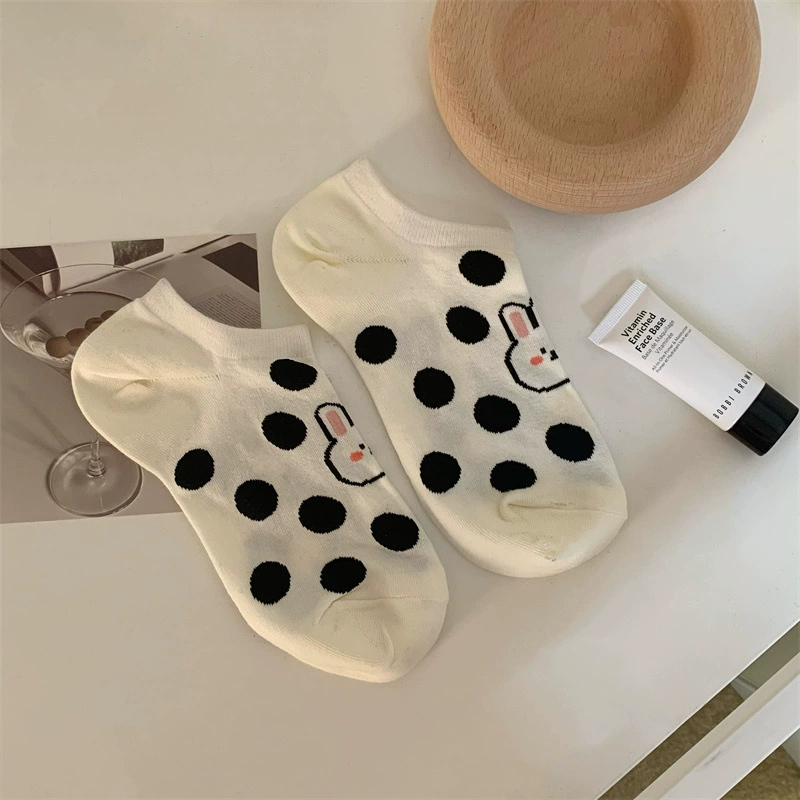 Summer socks, white wave dot ship socks, Japanese cartoon black and white rabbit creamy socks, non -slip invisible socks
