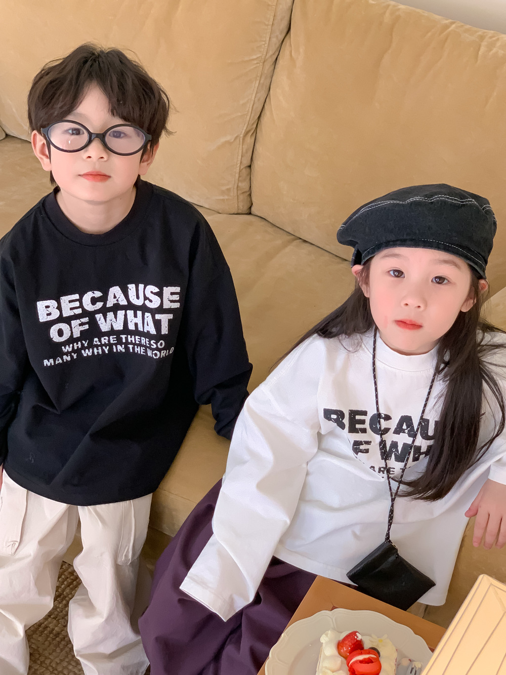 Children’s bottoming shirt 2024 spring boys and girls Korean style round neck letter bottoming shirt children’s casual inner top