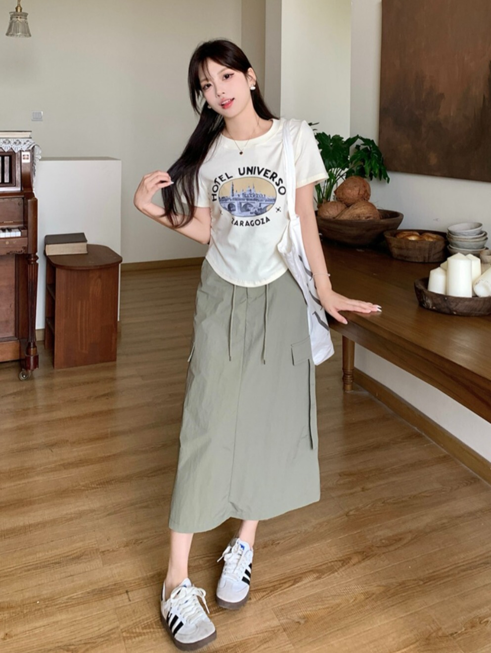 Short-sleeved T-shirt Fat MM hip drawstring fashion suit
