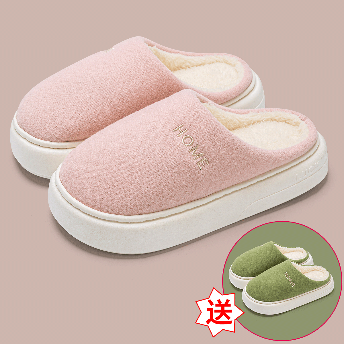 A pair of non -slip and warm men’s winter cotton slippers in the home room