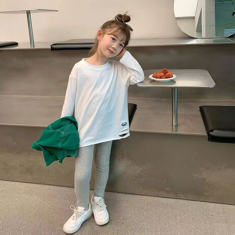 Sweet Cotton Ripped Base Shirt Girl’s Dopamine Long-sleeved T-shirt Spring Stylish Fashion Top