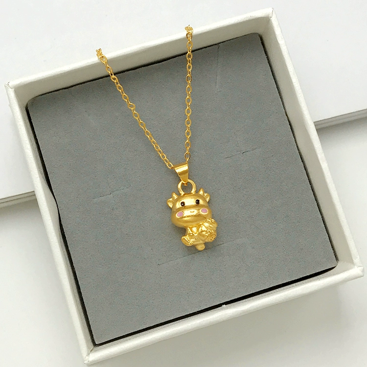 Vietnamese sand gold calf necklace pendant for women, gold-plated zodiac ox necklace, clavicle chain, couple, child, birth year pendant