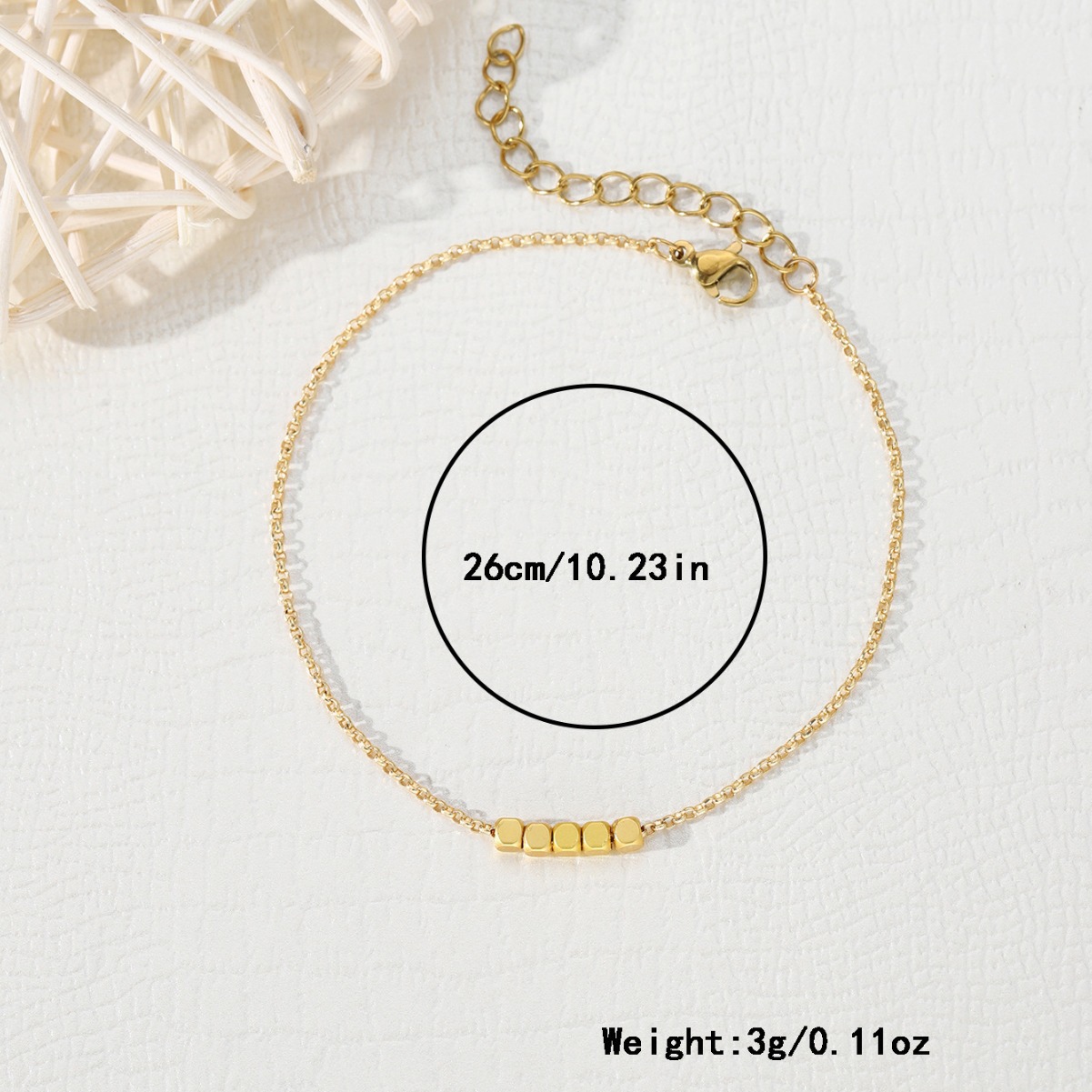 Cross-border Europe and the United States new fashion geometric gold bead square pendant anklet female niche high sense titanium steel foot jewelry wholesale