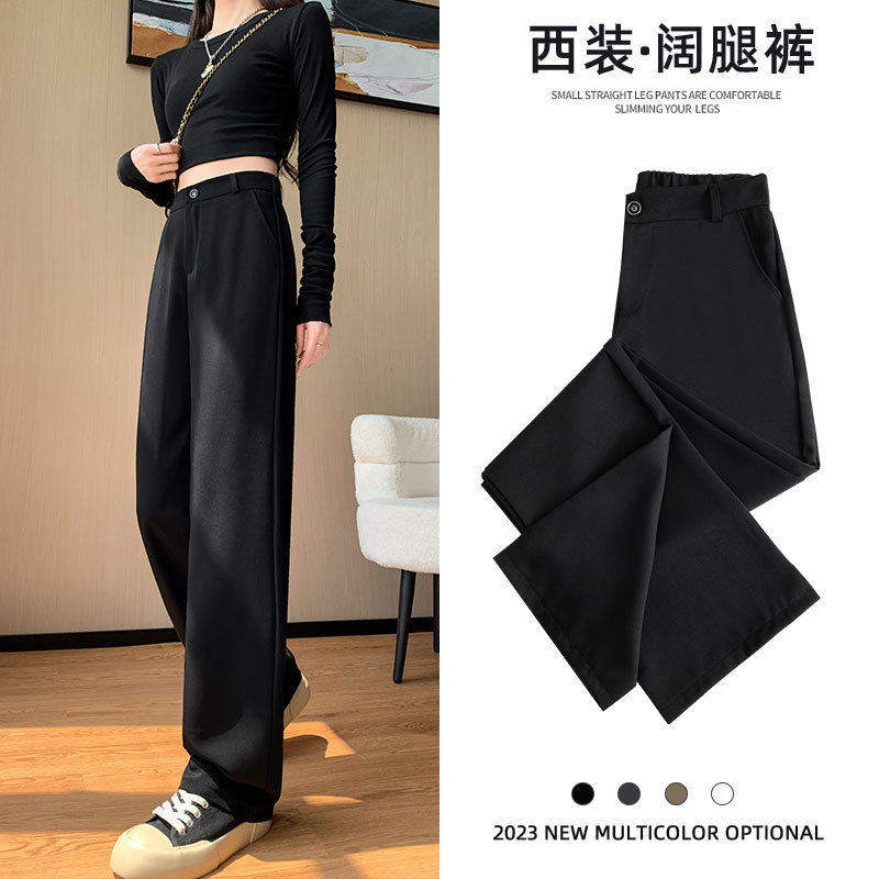 2024 spring new suit casual pants slimming high waist draping straight mop pants black wide leg pants for women