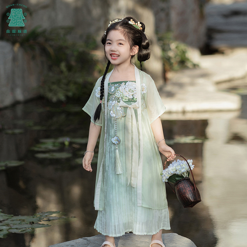 2024 summer new children’s clothing national style two-piece antique embroidered girls dress improved short sleeve children’s suit wholesale
