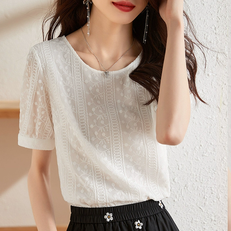Textured jacquard lace casual short-sleeved age-reducing embroidery